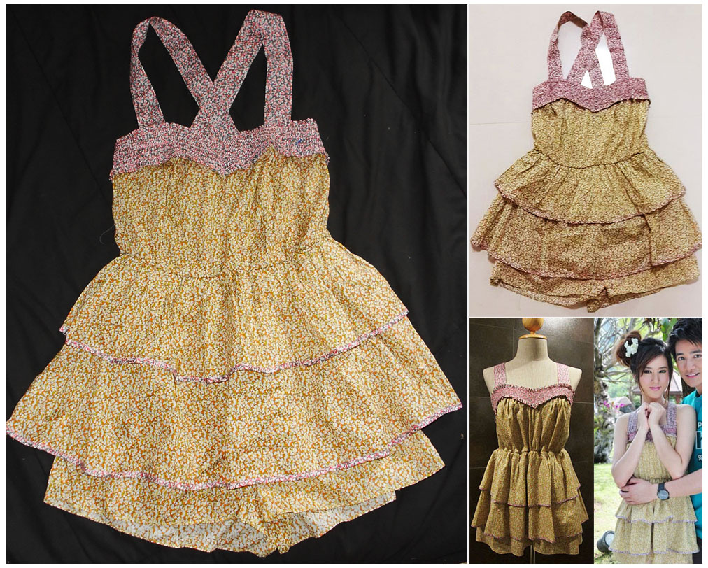 new srs meena playsuit สีเหลือง-ชมพู อก 32-36 เอว 24-34 สะโพกฟรี ยาว 31 นิ้ว