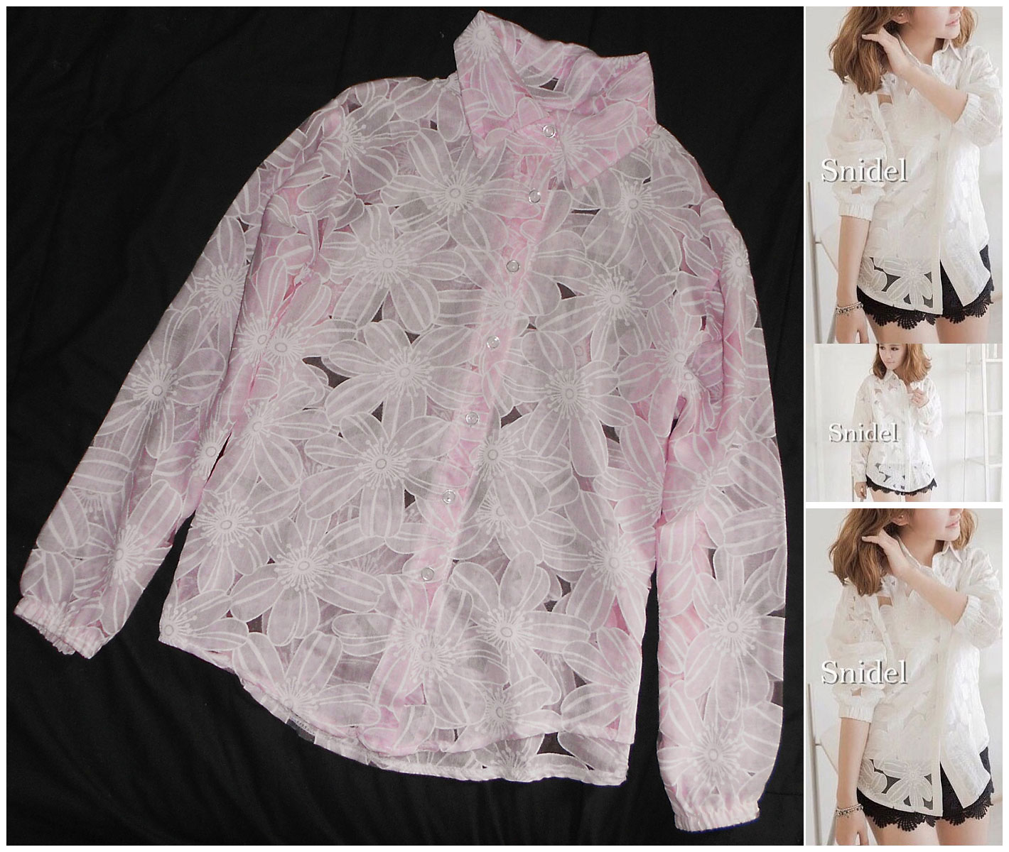 new เสื้อเชิ๊ตดอกไม้ฉลุสีชมพูอ่อน มี 1 ตัว อกได้ถึง 36 ยาว 25 นิ้ว