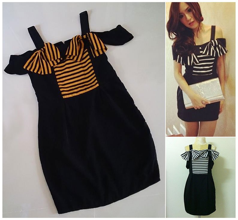 new cop srs เดรสเปิดไหล่ทรงเข้ารูป อก 32 เอว 26 สะโพก 36 ยาว 31 นิ้ว
