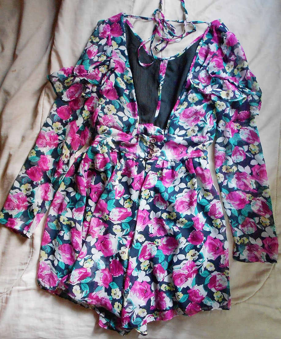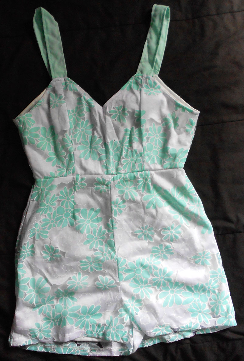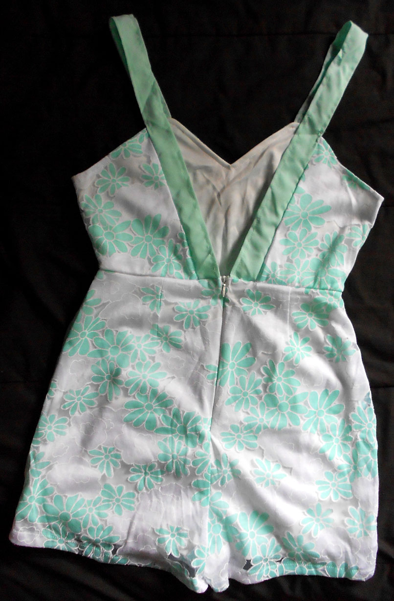 เพลสูทลายกุหลาบ ผูกโบว์หลัง ซับในทั้งตัวค่ะ อก 32-34 เอว 23-29 สะโพก 36 ยาว 28