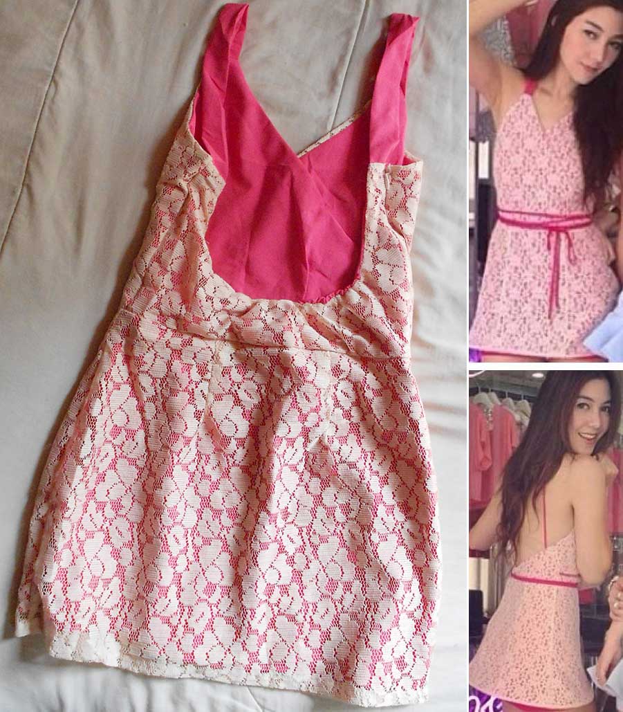 เดรสผูกโบว์ด้านหลัง สไตล์ senada ลายผีเสื้อ 3d cut out (สภาพใหม่นะคะ แต่ยับไปหน่อย) อก 32-34 เอว 25-30 ยาว 30 นิ้ว