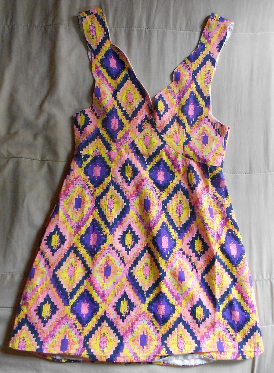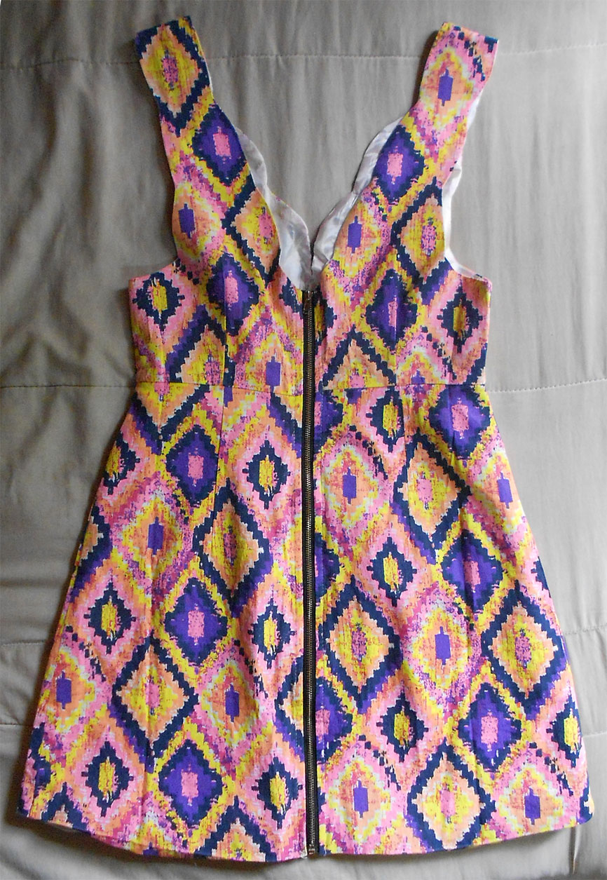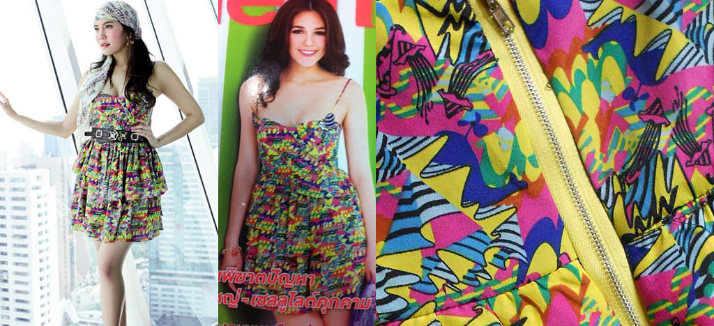 cop h&m เดรสลายกราฟิกสีสด ผ้าหนายืดได้ ซับในทั้งตัว ไซต์ s อก 30-32 เอว 26 สะโพกฟรี ยาว 30 นิ้ว