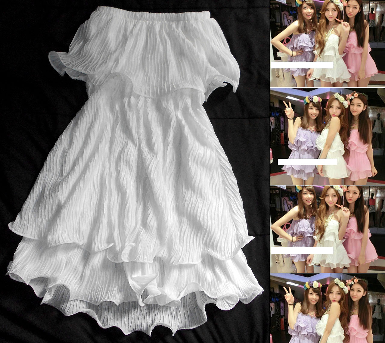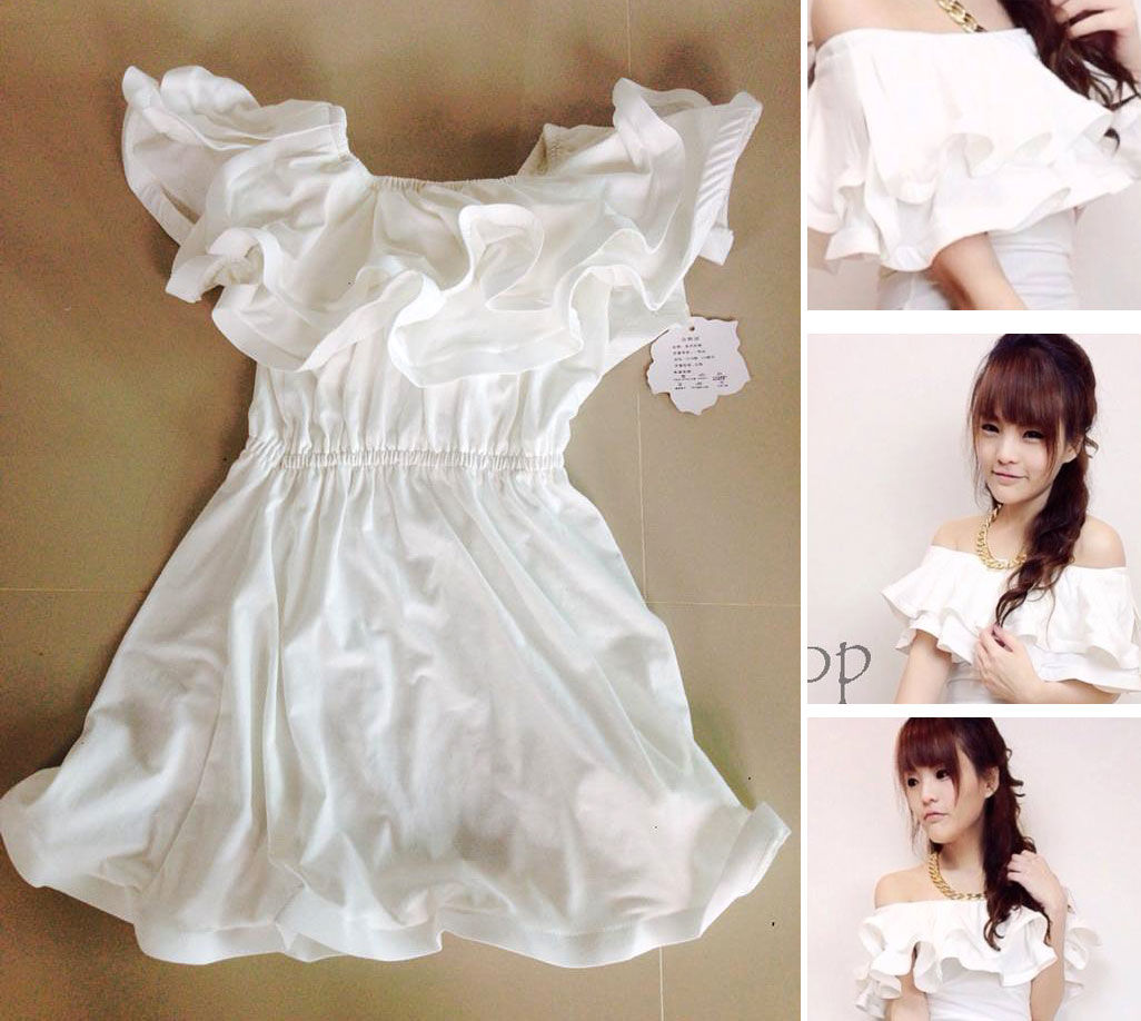 new เดรสสีขาวปาดไหล่ ระบายลอนเด้งๆ งานสวยมากๆ ซื้อมาแพง อกได้ถึง 36 เอว 24-34 ยาวประมาณ 28 นิ้ว