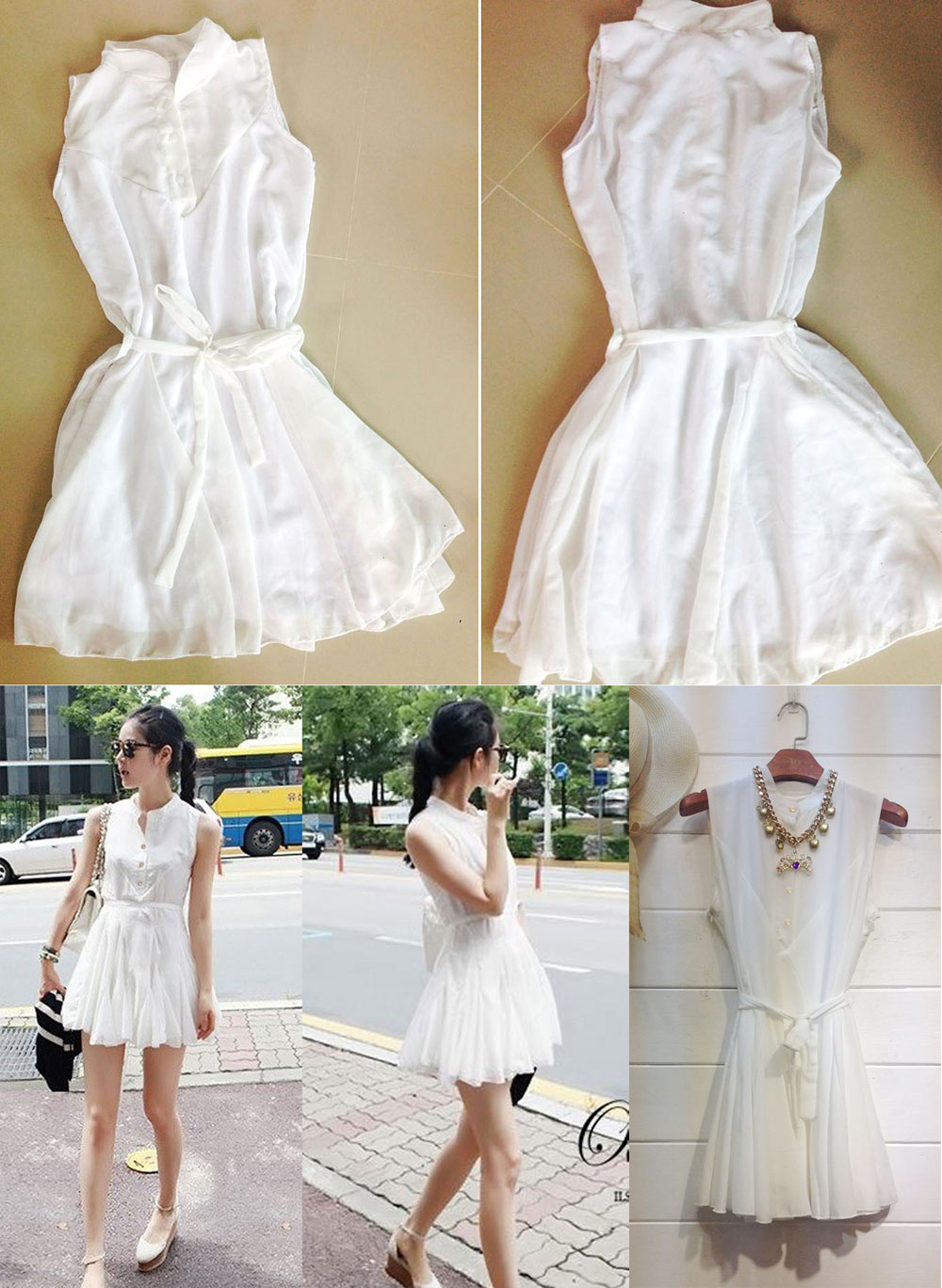 new เดรสคอจีนสีขาว ผ้าชีฟองมีซับใน ของจริงสวยค่ะ อก 34 เอว 30 ยาว 30 นิ้ว