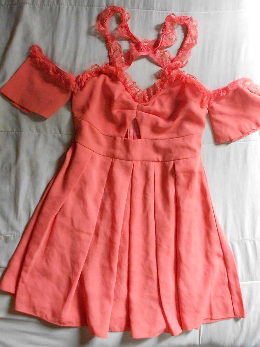 cop made of fabric เดรสสีโอโรส งานสวย ซับในทั้งตัว อก 32 เอว 26-27 สะโพกฟรี ยาว 30 นิ้ว
