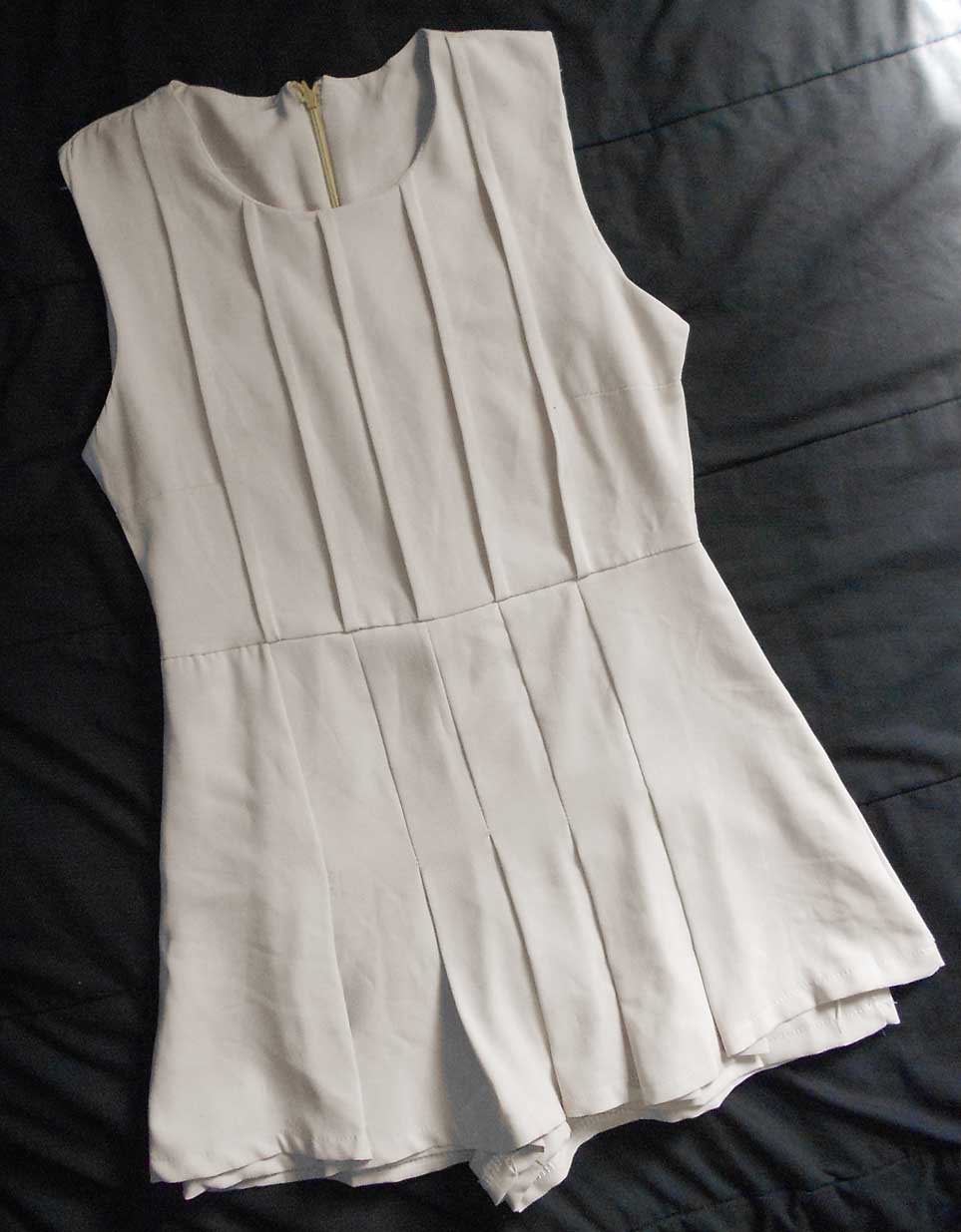 เพลสูทผ้าหนา สีครีมค่ะ ตัวนี้งานสวยมาก ผ้าอย่างดีเลย อก 34 เอว 28 สะโพก 36 ยาว 27 นิ้ว