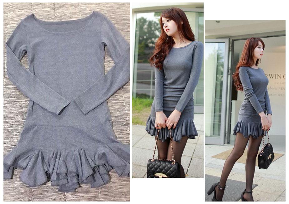 new เดรสผ้ายืดสีเทาชายกระโปรงจับจีบ งานสวย ผ้าไม่บางค่ะ อก 32-34 เอว 26-28 สะโพก 36 ยาว 31 นิ้ว