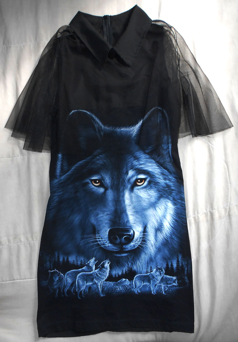 เดรสพิมพ์ลายหมาป่า ทรงสวยค่ะ แบบเก๋ อก 32-34 เอว 30 สะโพก 36-38 ยาว 32 นิ้ว