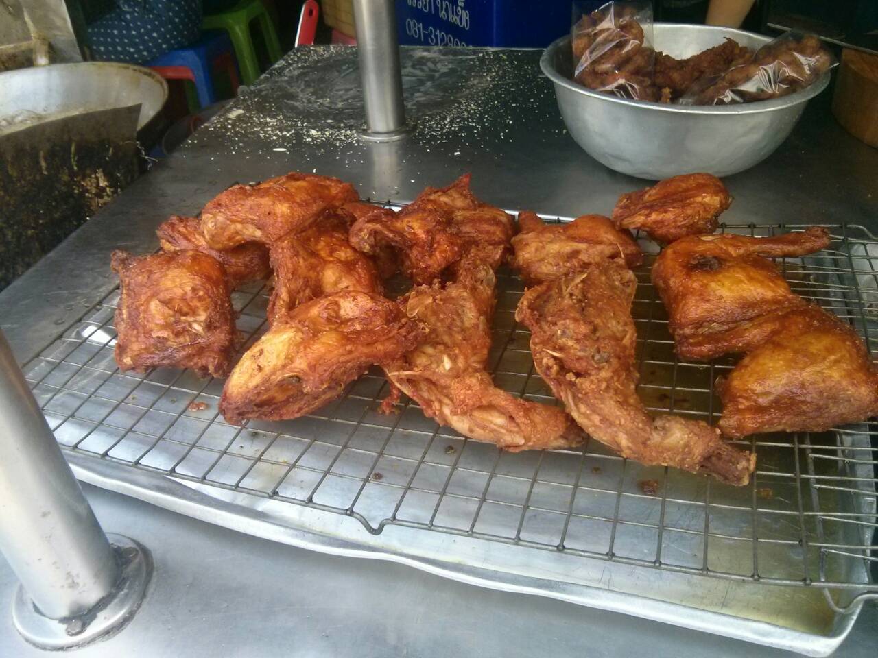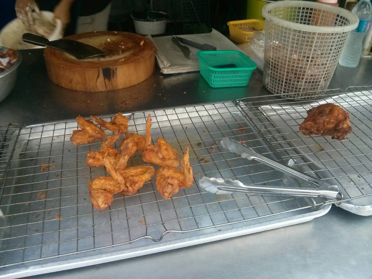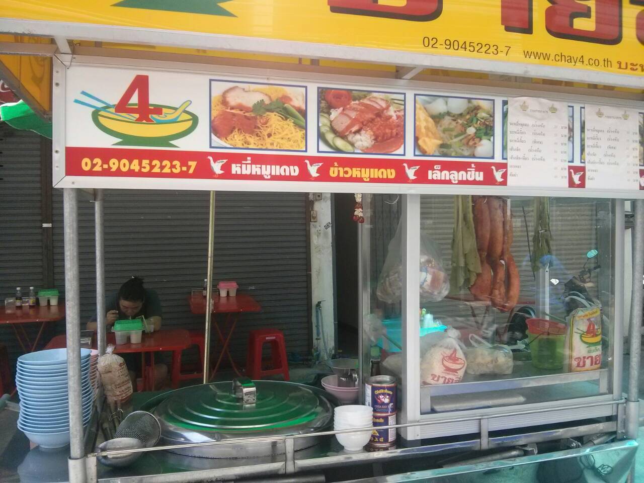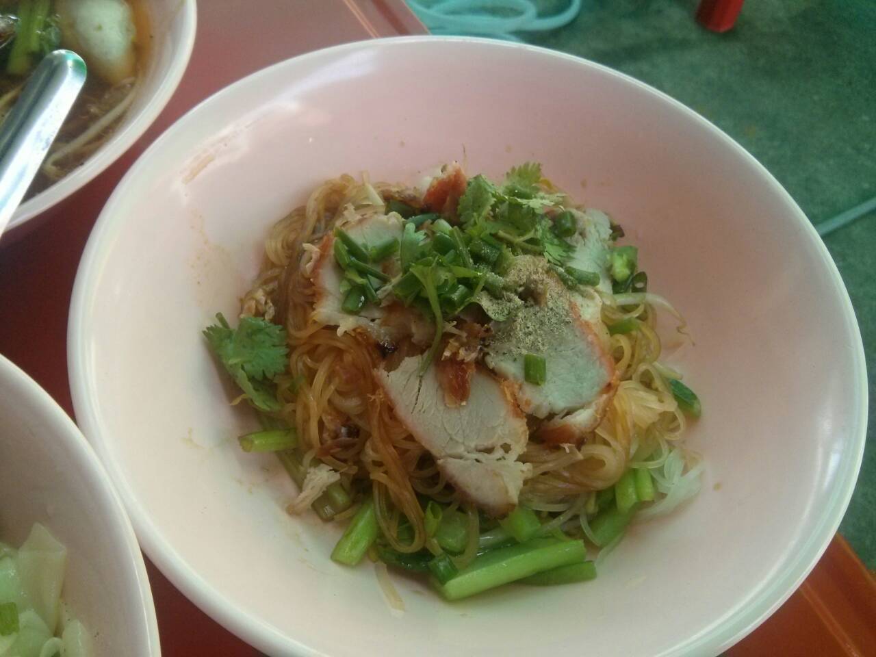 ว่าจะเดินไปกินก๋วยเตี๋ยวแซงโค้งเจ้าประจำ เดินผ่ายชายสี่ เอ๊ะวันนี้เพิ่งมาหลังจากหยุดขายไปนาน 2 สัปดาห์ได้มั้งนึกว่าหนีหนี้เลิกขายไปแล้ว(ระหว่างกินอยู่ก็มีคนเดินผ่านมาทักตลอดว่านึกว่าเลิกขายแล้ว เจ้าของร้านล้มขาเจ็บมาขายไม่ได้) เดินเลยร้านมาเจอร้านไก่ทอดเลยตัดสินใจกินไก่ทอดแกล้มบะหมี่ชายสี่นี่แหละ เดี๋ยวเลิกขายจริงจะไม่ได้ลองกินร้านนี้ ก็ซื้อน่องไก่กะตะโพกมา สั่งบะหมี่เกี๊ยวแห้งพิเศษ เล็กแห้งพิเศษ และเกาเหลา ระหว่างรอเหลือบไปเห็นมอ'ไซด์ขายก๋วยเตี๋ยวหลอดขนมจีบ เลยยืมถ้วยก๋วยเดี๋ยวแม่ค้าไปซื้อมาเป็นเครื่องแกล้มอีกอย่าง ไปยืนเถึยงกับคนขายว่าพริกน้ำส้มมันมีแต่เม็ดพริกคนขายบอกว่าไม่เผ็ด ถ้าเป็นเปลือกพริดสีแดงๆถึงจะเผ็ด ไอ้เราก็เลยต้องยกวิชาการมาอ้างว่าเม็ดพริกมีสารทำให้ระคายเคืองถึงเผ็ด กว่าจะให้เข้าใจได้ แดดเผาห้ว เหงื่อท่วมต้วเลย