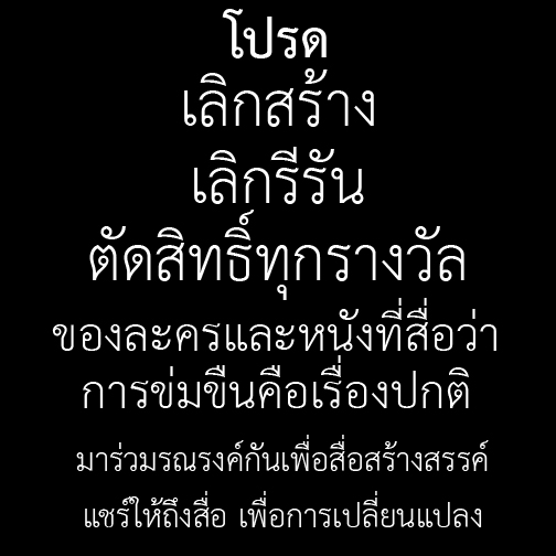 ผมตั้งกลุ่มรณรงค์เลิกเผยแพร่คติการล่อลวงข่มขืนว่าเป็นสิ่งปกติส่งไปที่ กสทช. มาร่วมกันนะครับ