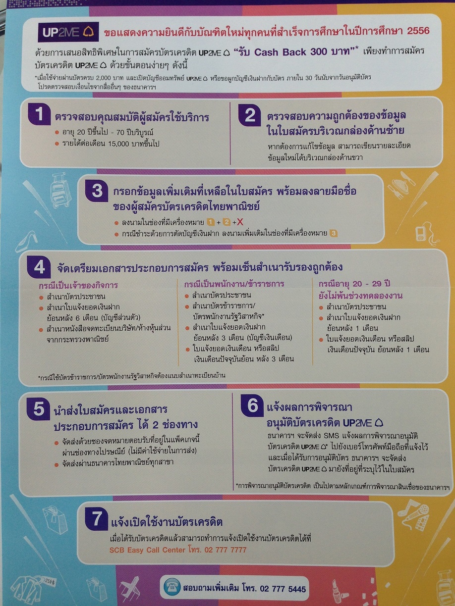 หลังจากที่เดินเรื่องเสร็จ เมื่อวานพอดีผมกับแฟนเจอกันแล้วเขาก็ให้ดูเอกสารที่ไทยพาณิชย์ส่งมาให้ เป็นจดหมายแสดงความยินดีเรื่องสำเร็จการศึกษาและเกี่ยวกับบัตร up2me ผมก็แบบเสียดายมากเพิ่งสมัครไป ไม่รู้ว่าจะได้โปรโมชั่นนี้หรือเปล่านะ เพราะผมเพิ่งไปปิดบัญชีไทยพาณิชย์มาด้วยเมื่อเดือนที่แล้ว เลยไม่รู้ว่าทางธนาคารจะส่งจดหมายนี่มาให้ผมไหม แต่ในส่วนนี้ผมก็ไม่ได้ซีเรียสอะไร