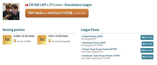 ดูเหมือนว่าสถิติโลกเดียวไม่อาจตอบสนองความสำเร็จได้ John Lam จึงได้ทำสถิติโลกอื่นเพิ่มมากขึ้น ด้วยซีพียูและเมนบอร์ดเดียวกัน ก็สร้างประวัติศาสตร์ใหม่ด้วยการทำคะแนน 1601 marks จาก Intel XTU และกลายเป็นนิยามใหม่ในการโอเวอร์คล็อกซีพียูของโลก