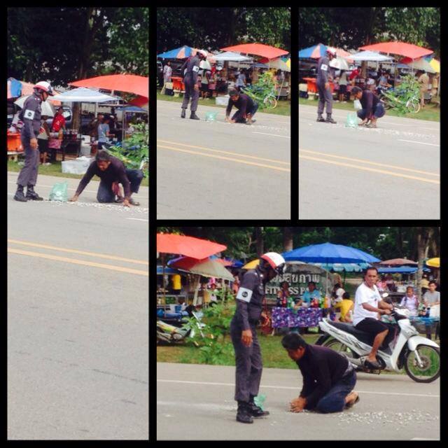 ภาพข่าว ตำรวจ กับ ลุงแก่ๆกำลังเก็บเศษหินที่ตัวเองทำตก