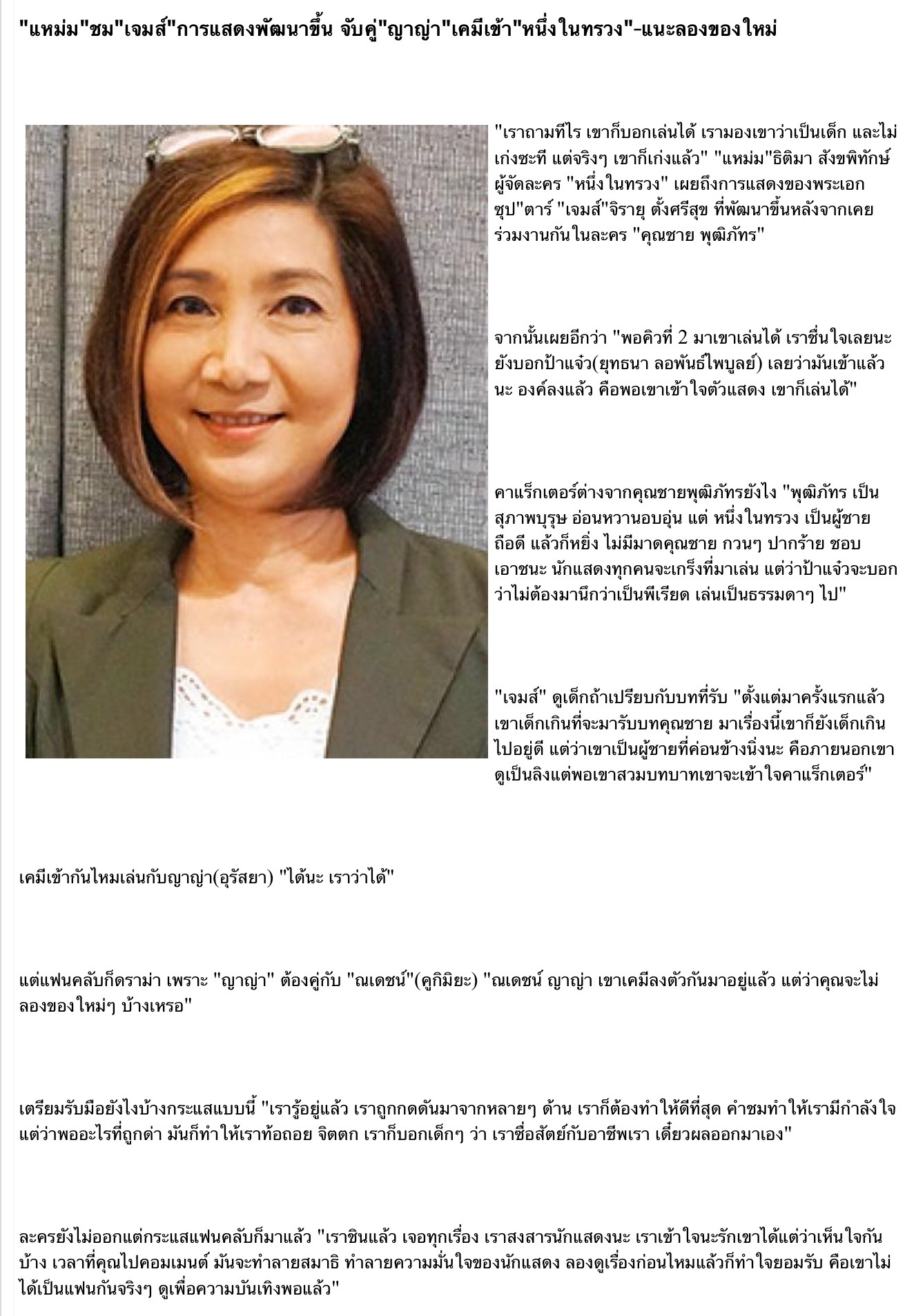 "แหม่ม"ชม"เจมส์"การแสดงพัฒนาขึ้น จับคู่"ญาญ่า"เคมีเข้า"หนึ่งในทรวง"-แนะลองของใหม่