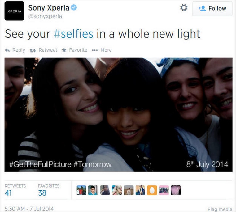 ยักษ์ใหญ่อิเล็กทรอนิกส์ ได้เผยให้เห็นภาพๆหนึ่ง พร้อมกับข้อความ "See your #selfies in a whole new light" ผ่านทางทวิตเตอร์ Sony Xperia (@sonyxperia) เมื่อวันที่ผ่านมา
