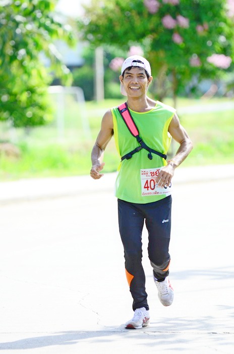 ตลอด ระยะทาง 9 กม.สุดท้ายวิ่งแทบไม่ได้เลยต้องเดินมาตลอดจนเหลือ 2 กม.สุดท้ายกัดฟันวิ่งสร้างภาพหน่อยวิ่งผ่านกล้องพี่สมชายด้วยอาการหน้าชื่น ตาบานแต่ในใจสุดทรมานที่สุด และแล้วก็เข้าเส้นชัยด้วยเวลาเกิน 5 ชม.ได้ซ้อมยาวววววว สมใจอยาก เป็นธรรมดามาทีหลังของกินย่อมหมด และมันหมดจริงเหลือข้าวไข่เจียวแต่ต้องยืนรอให้พี่เค้าเจียวไข่ให้ พี่ครับวิ่งมานานแล้วมันเหนื่อยมากต้องมายืนรอพี่เจียวไข่นานอีก ผมวิ่งช้าแล้วพี่จะเจียวไข่ให้ช้าอีกเพื่ออะไร รู้มั๊ยว่าหิวจะตายเลี้ยวววว รอไข่เจียวเกือบ 10 นาทีนี่วิ่งต่อได้ 2 กม.เลยนะ…ขี้โม้ไปอีก