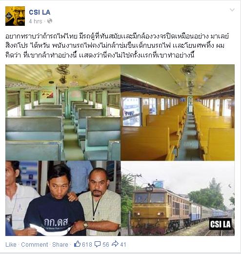 ถ้ารถไฟไทย มีรถตู้ที่ทันสมัยเเละมีกล้องวงจรปิดเหมือนอย่าง มาเลย์ สิงคโปร ไต้หวัน พนง.รถไฟคงไม่กล้าข่มขืนเด็กบนรถไฟ โยนศพ