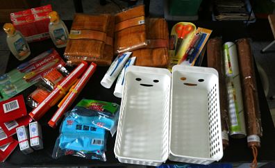 ชุดปากกาลูกลื่น,กรรไกร,เทปใส,น้ำมันเหยหอม,ไทลีนอล 2 แผง