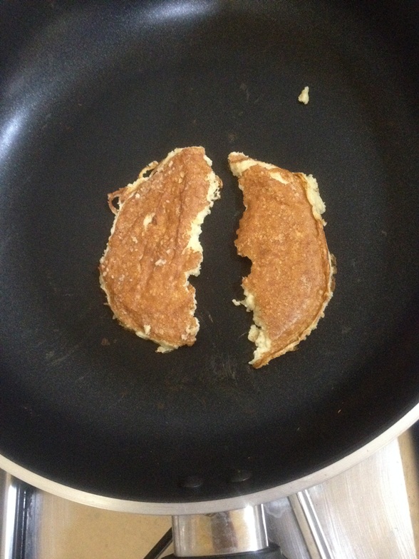 3. จากนั้นก็เอามาทอดเลยใช้เทฟล่อนนะจะได้ไม่ต้องใส่น้ำมันไม่ติดกระทะ ฮ่าๆๆๆ แต่ใครอยากได้แบบหอมๆกว่านี้ก็ทาเนยบนกระทะก็ได้ ^^