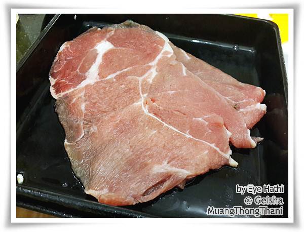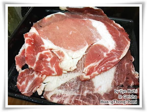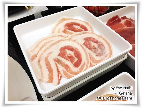 เนื้อหมูมี 3 ส่วน ดูสดสะอาดดี และแล่มาบางใช้ได้ค่ะ สามารถบอกได้ว่าไม่เอาราดซอสใดๆมา ถ้าราดมาบางทีเค็มไปอะค่ะ ส่วนเนื้อวัวก็ดีค่ะ นุ่ม และบางดี มี 3 แบบเช่นกัน ชอบๆ จนเสียดายเลย อยากจิลองแบบแพงบ้าง ก็ยังไม่มีโอกาสไปอีกรอบ T^T ปลาไข่แข็งดีค่ะ