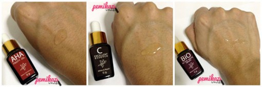 - AHA / C จะให้ความรู้สึกเหนียวๆ แต่เมื่อทาแล้วรู้สึกเบาบางและแห้งไปกับผิวภายในเวลที่รวดเร็ว