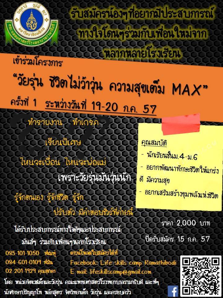 ค่าย "วัยรุ่น ชีวิตไม่ว้าวุ่น ความสุขเต็ม MAX"