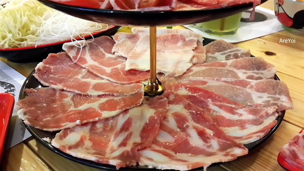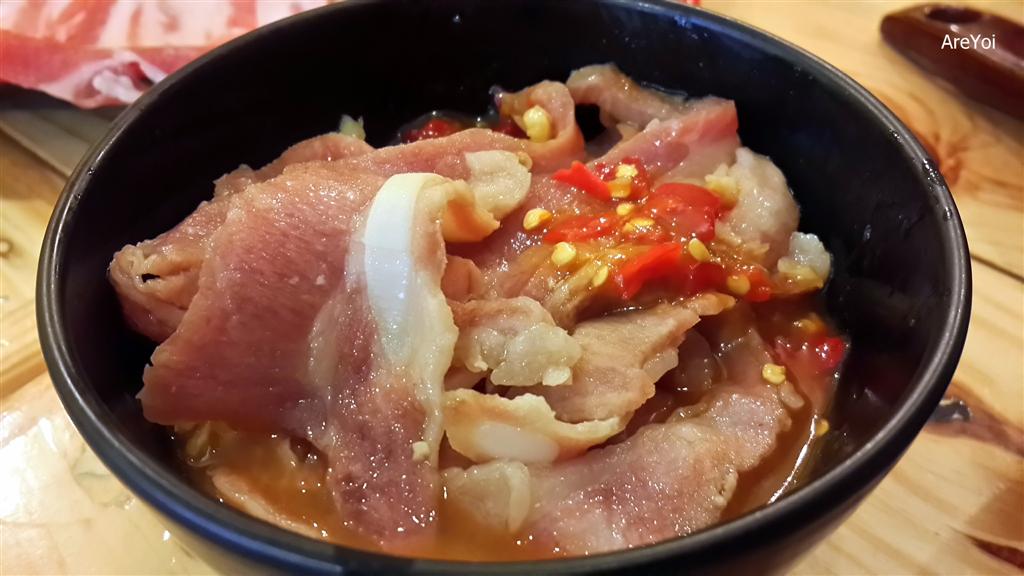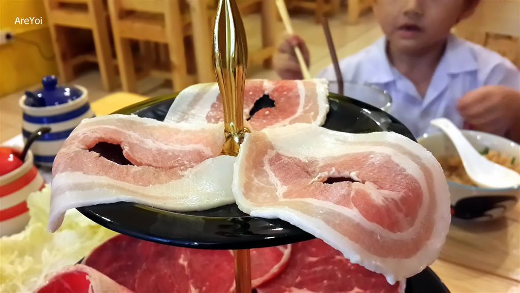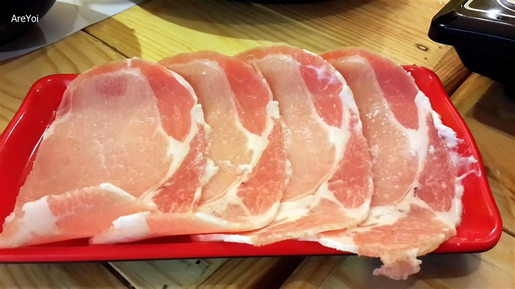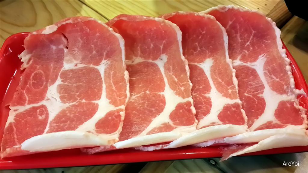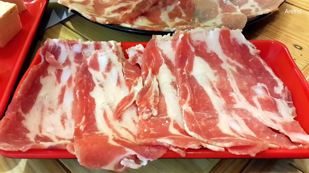 ล่างสุดเป็นหมู มีซี่โครงอ่อนสไลด์ และเนื้อสันคอ สันนอก