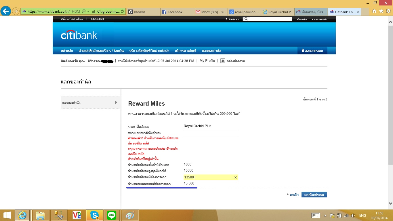 เพราะฉนั้น แลกจาก Citibank แค่ 13,500 ไมล์ เพื่อให้ครบ 14,000 ไมล์