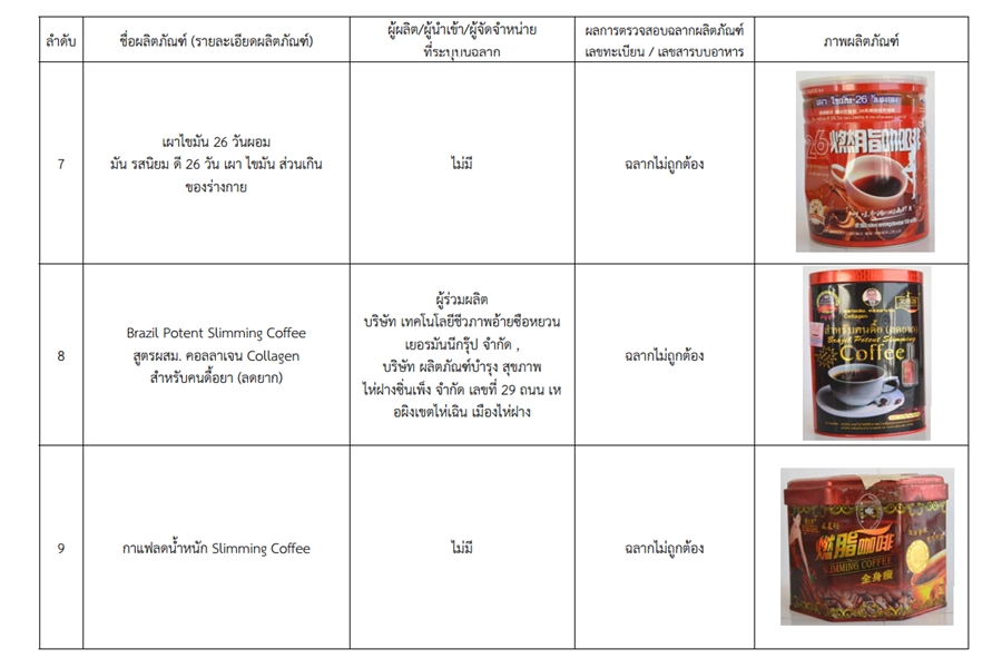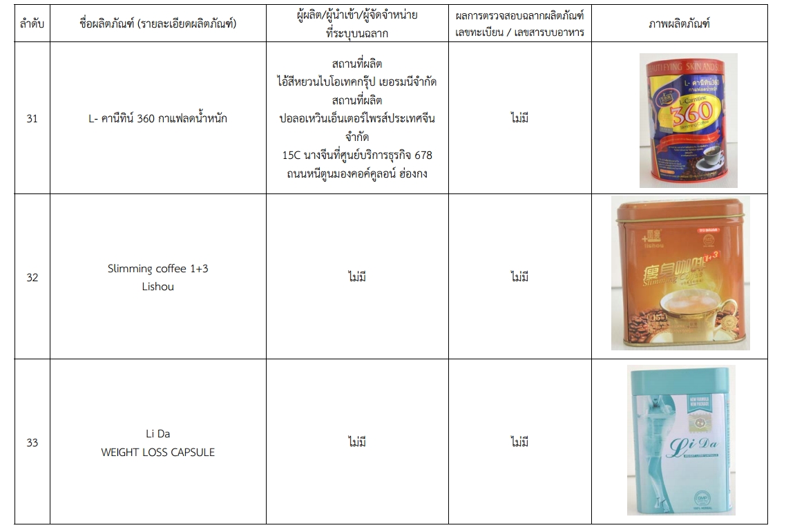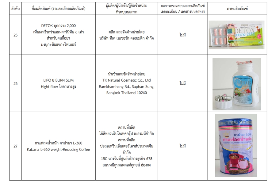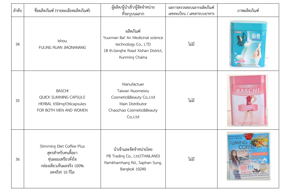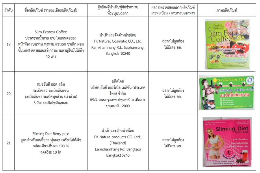 กลุ่มที่ 2 ผลิตภัณฑ์อาหาร/ผลิตภัณฑ์ยาอ้างสรรพคุณลดน้ำหนัก