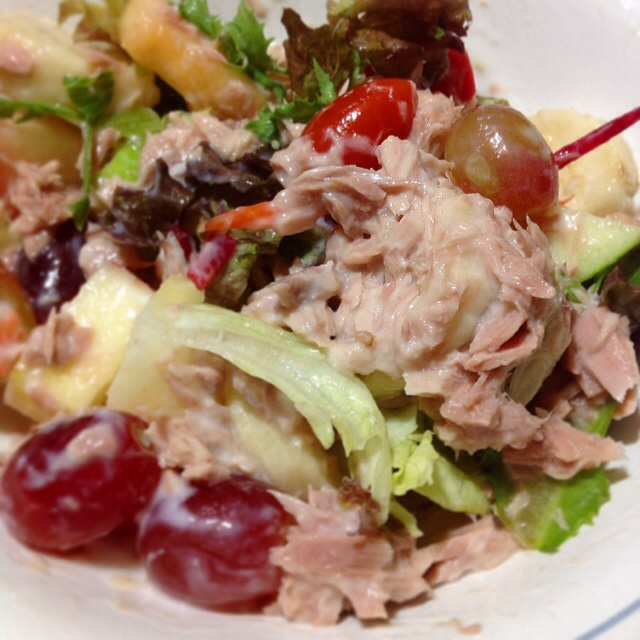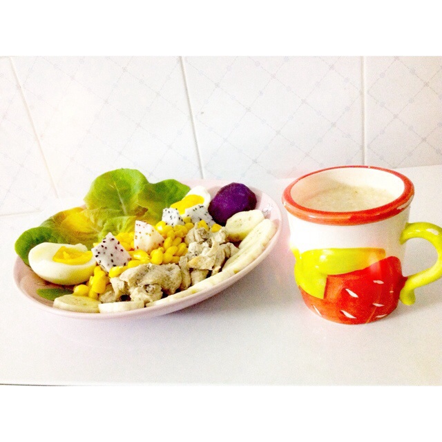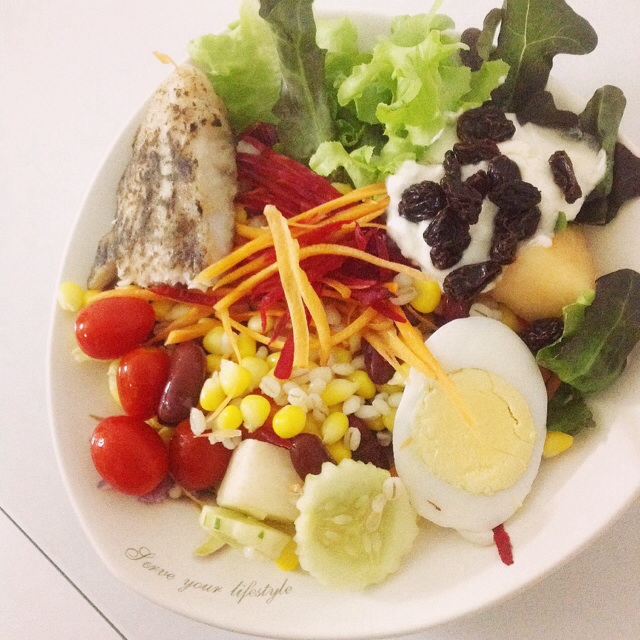 มื้อเย็น (ส่วนใหญ่เป็นสลัด สเต็ก น้ำสลัด = โยเกิร์ต)