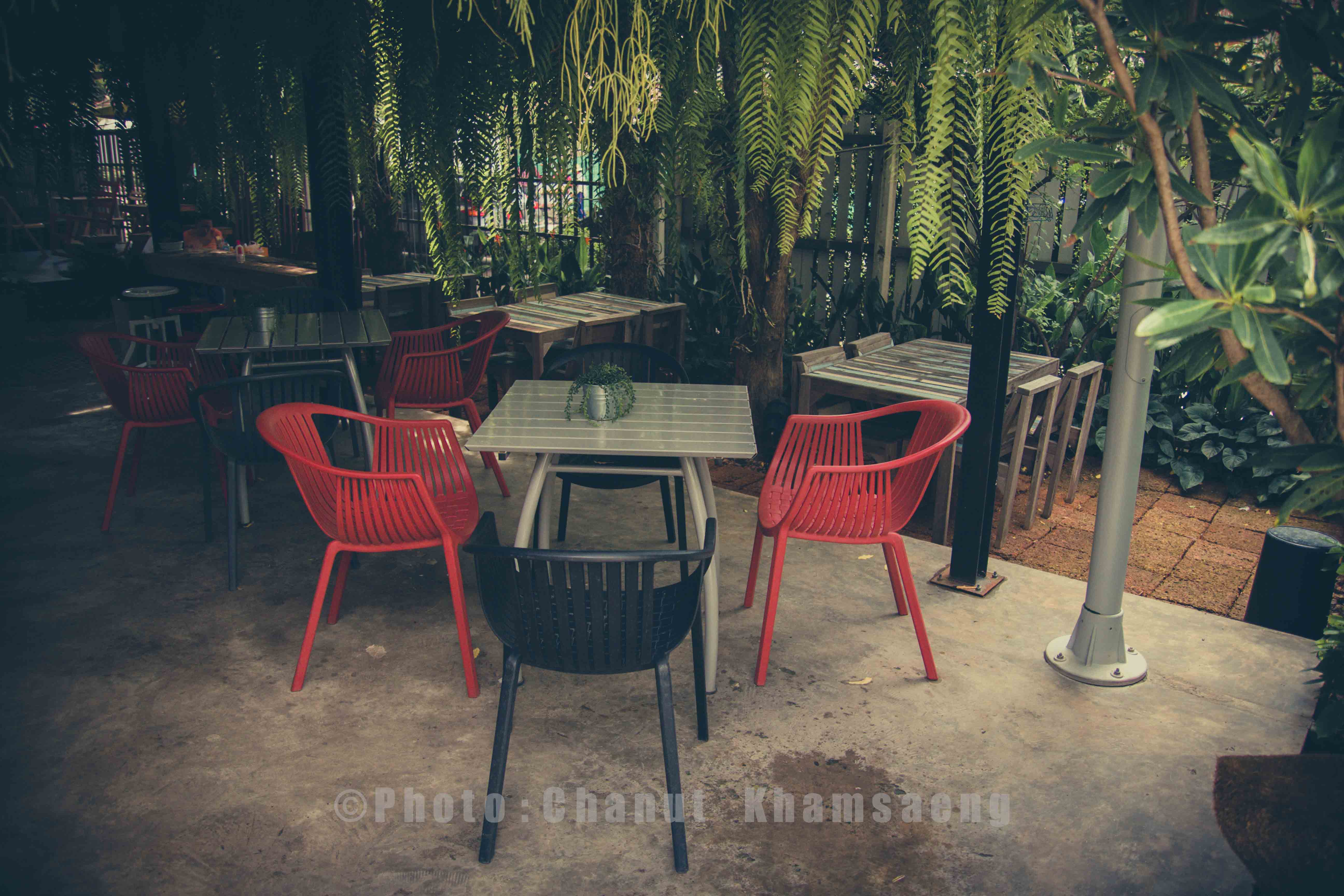 "ภายในร้านร่มรื่นไปด้วยต้นไม้ มีมุมหลายมุมให้เลือกนั่งตามอัธยาศัย"