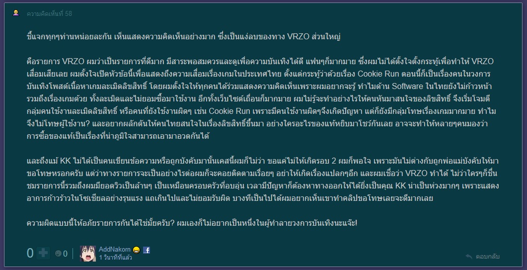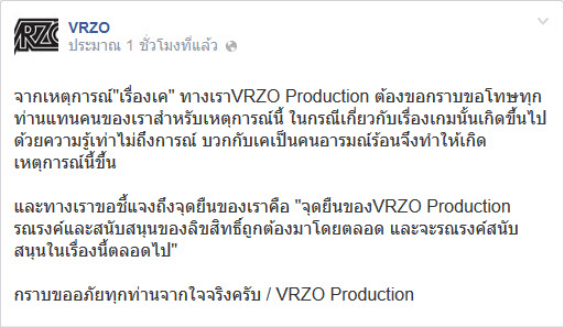 ก็ว่าต่อกันที่ภาค 2 เลยละกัน ซึ่งทาง VRZO และจากเพจคุณ VRZOKK เองก็ออกมารับผิดและขอโทษแล้วครับผม ตามนี้