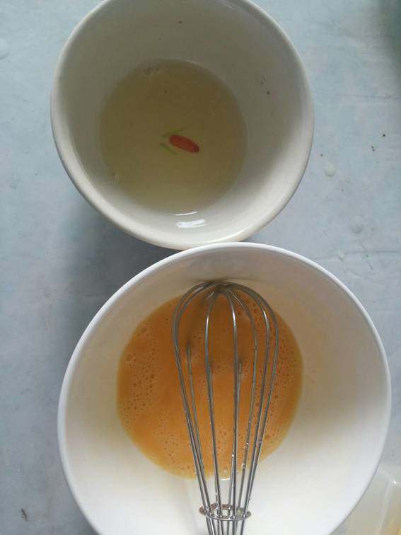 แยกไข่ขาววส่วนนึงออกมาจากไข่แดงค่ะ