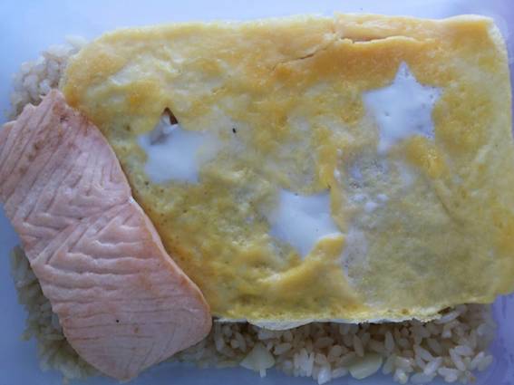 นี่ค่ะหลังเสร็จ พอดีเราทำเป็นข้าวกล่องเอาไป HBD แฟนค่ะ เห็นว่าไข่เจียวยังไม่พอดีกล่องข้าวเลยทำแซลมอนไปใส่เพิ่ม