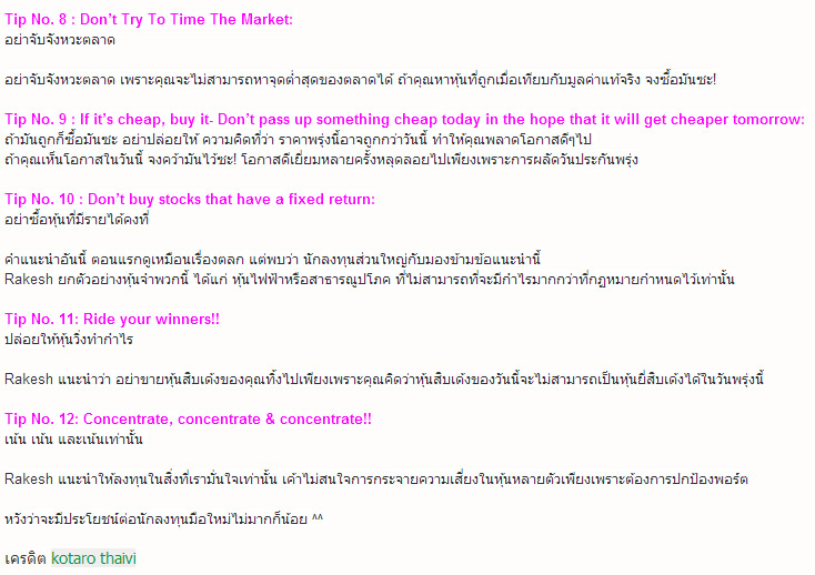 เผยเทคนิคการหาหุ้น 10 เด้ง!!! By kotaro : Posted: Mon Feb 21, 2011 9:14 pm / ThaVI สวัสดีครับ ผมมีคำแนะนำสำหรับการหาหุ้น 10 เด้งมาฝากครับเพื่อนๆ นลท ครับ มีใครรู้จัก Rakesh Jhunjhunwala ใหมครับ เขาถ