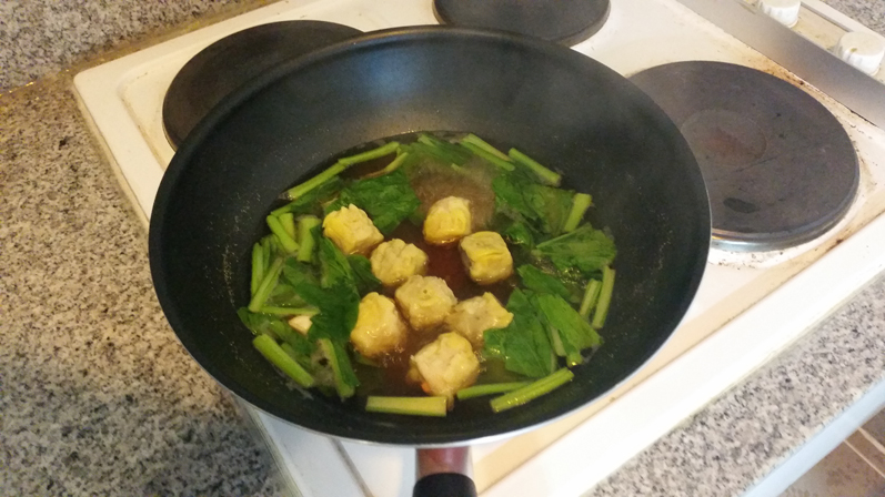 พอผักเริ่มสุกก็ตามด้วยพระเอกของเรา ขนมจีบ 7-11 นั่นเอง