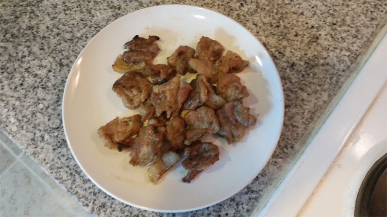 เมื่อเช้าผมมีของ 2 อย่างที่ซื้อมาแล้วแต่ไม่ได้กิน เลยเอาเข้าตู้เย็นไว้ อย่างแรกคือหมูปิ้ง
