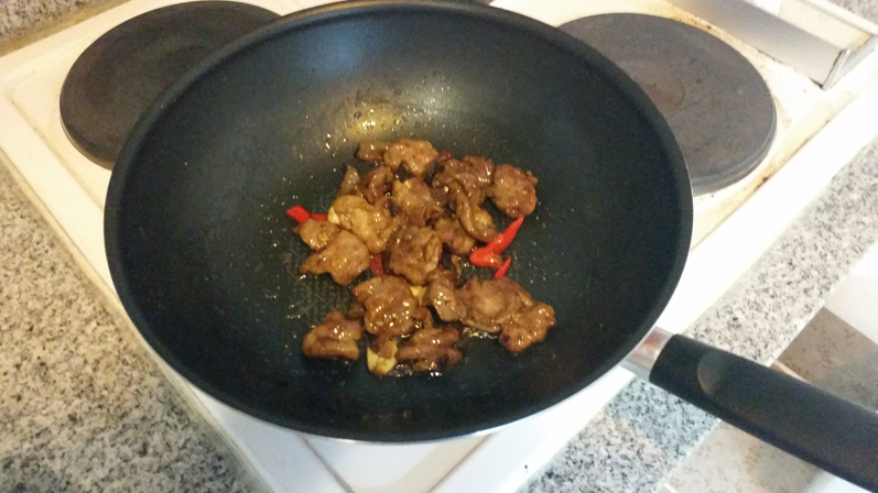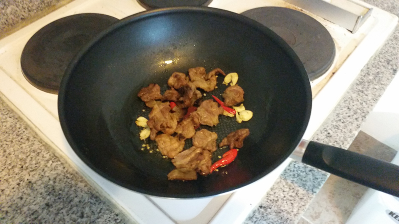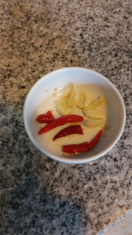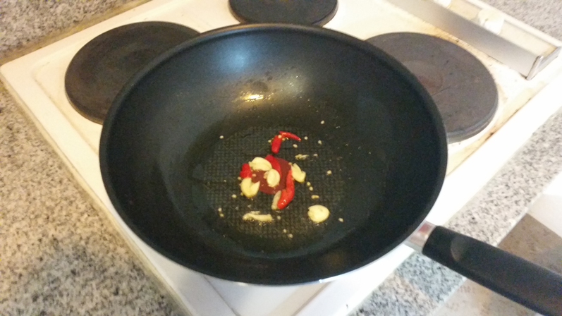 พอเริ่มร้อน ใสพริกกับกระเทียมลงไป