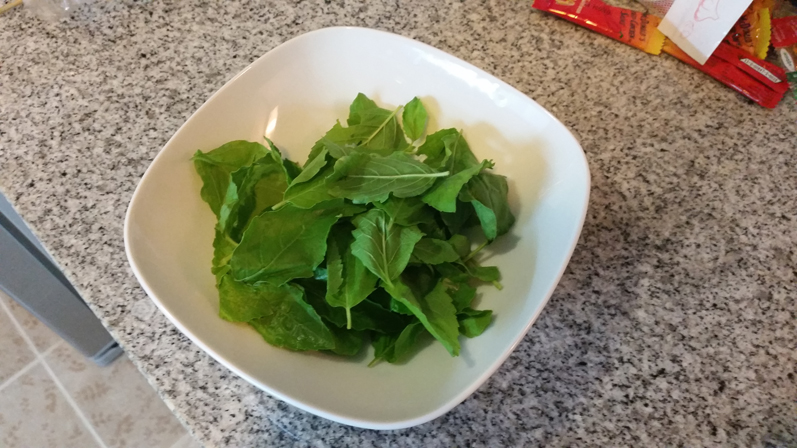 เด็ดใบกะเพราล้างน้ำ สะเด็ดน้ำพักไว้
