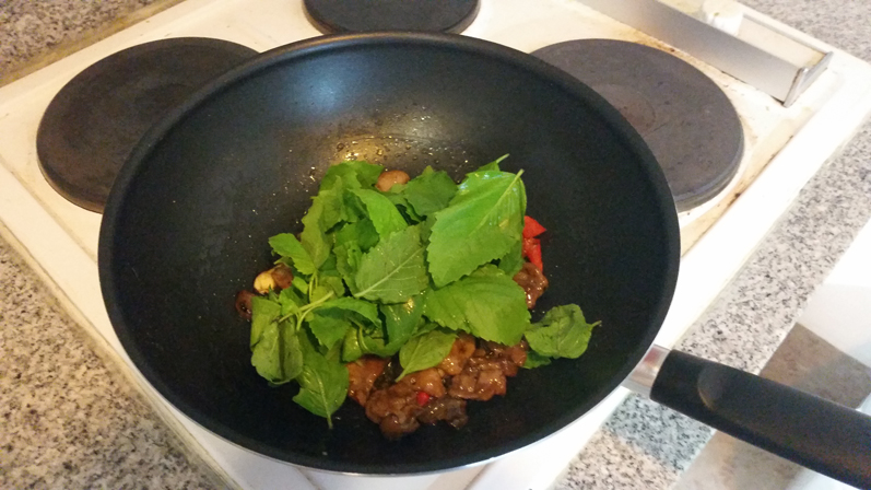 ปิดท้ายด้วยใบกะเพราะ ใส่แล้วปิดไฟเลยครับ