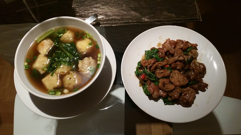 ไม่น่าเชื่อใช่มั้ยครับว่าจากมื้อเช้าที่เราซื้อแล้วไม่ได้กิน จะกลายมาเป็นมื้อเย็นที่สุดยอดขนาดนี้ ยิ่งพอได้ชิมแล้วขอบอกเลยว่า อร่อยมาก!! อันนี้ไม่ได้ชมฝีมือตัวเองนะครับ แต่เป็นเพราะหมูปิ้งและขนมจีบที่รสชาติดีในตัวของมันอยู่แล้วด้วย