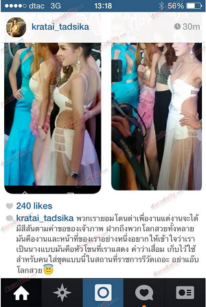สาวอีกคนที่เรียกเสียงฮือจากงาน Daradaily The Great Awards #3 จนเจ้าตัวต้องออกมาโต้ผ่านอินสตราแกรมว่ามันคืองานค่ะ! ทั้งหมดคือการแสดง คืองานที่เราต้องทำคะ! ตกลงว่าชุดนี้โป๊เกินงามหรือไม่ลองดูเอากันเองนะคะ
