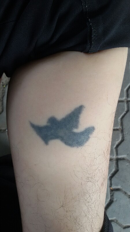 ตั้งกะสมัยอายุ17 ช่วงนั้น บ้าการเมืองขนาดหนักเลยสักรูป นกพิราบ ไว้ที่ขา หมายถึง อิสระ และเสรีภาพ นิวฟรีดอม