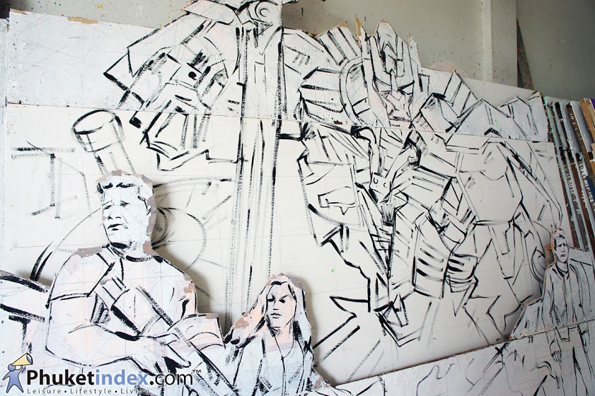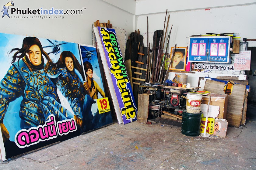 โดยส่วนตัวของผู้เขียน จึงเกิดความอยากรู้จักกับผู้ที่ผลิตผลงานเหล่านั้น จึงได้ติดต่อไปหาผู้จัดการโรงภาพยนตร์โคลิเซี่ยม พาราไดส์ ภูเก็ต และได้ที่อยู่ของสถานที่ซึ่งใช้ผลิตงานศิลปะชนิดนี้ โดยปัจจุบันงานทั้งหมดถูกเขียนขึ้นที่ตึกแถว บริเวณหมู่บ้านนิมิตร ติดกับวงเวียนม้าน้ำ ในตัวเมืองภูเก็ต โดยศิลปินผู้อยู่เบื้องหลังป้ายโฆษณาหนังจำนวนมาก คือ ลุงอี๊ด และลุงป๋อง ผู้เขียนไม่รอช้าเริ่มตั้งคำถามพูดคุยกับคุณลุงทั้งสองอย่างออกรสออกชาติ ท่าทางของแกดูงงๆ นิดหน่อย เพราะไม่ค่อยอยากจะเชื่อว่าจะมีใครสนใจสิ่งที่แกทำ แต่สำหรับผู้เขียนคุณลุงที่อยู่เบื้องหน้า คือ ศิลปินคนโปรด