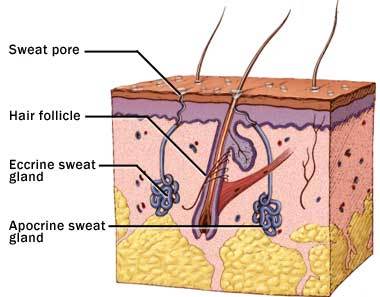เหงื่อจะถูกขับออกมาทางผิวหนังหรือตามซอกต่าง ๆ ของร่างกาย