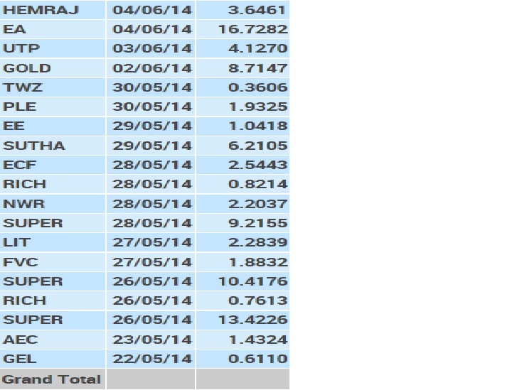 หุ้นน่าสนใจวันนี้ 6/05/57 sl=stop loss เขียว - slc sl=.49,ple sl=1.58,btsgif sl=9.40,ptl sl=9.80 แดง -ตามรูปครับ Set เขียว , S50m14 day เขียว,tts ว่าง ,ทองแดงครับ Add Facebook คุยแบบ Realtime