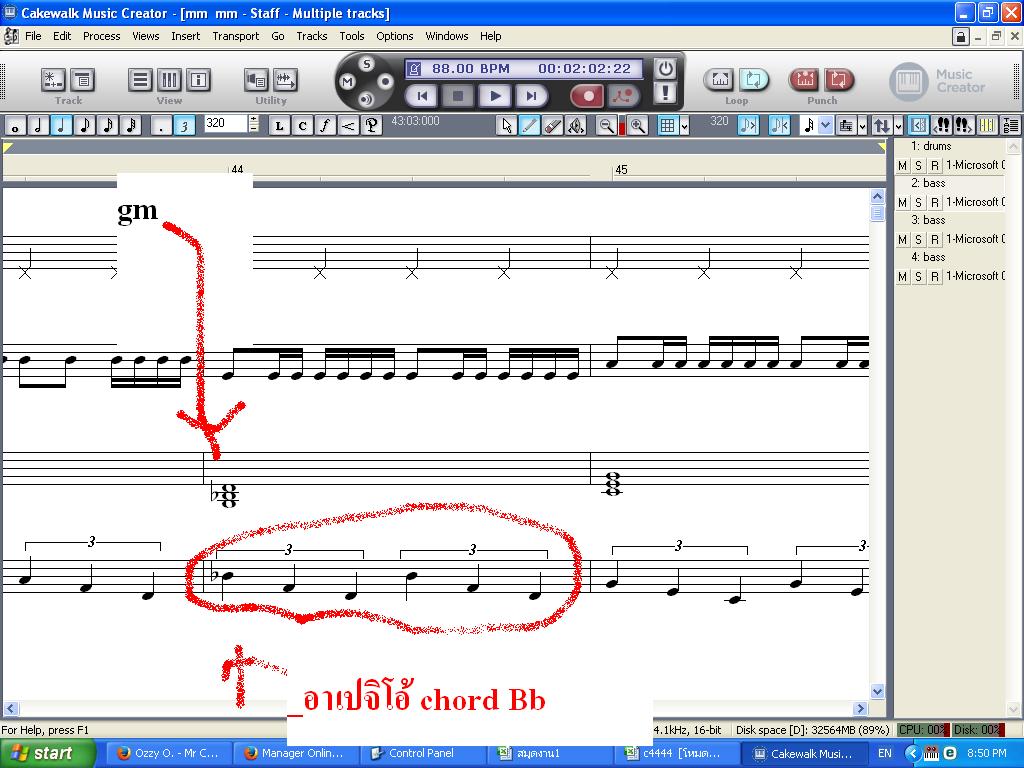 เขียนทำ นอง เพลง ถ้า ห้อง 2 ใช้ chord c ห้องสอง ไม่มี โนท ใน chord c c e g