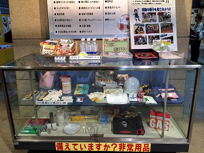 ในตู้โชว์ก็จะมีข้าวสารอาหารแห้ง (ไม่ได้จะเตรียมใส่บาตรวันปีใหม่แต่อย่างใด) น้ำบรรจุขวด ถุงมือผ้า เตาแก๊สพกพาแบบลูกเสือสไตล์