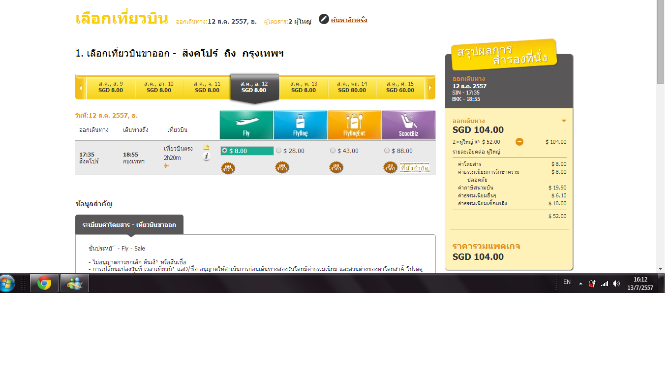 คือตามรูปค่าตั๋ว 2 คน ประมาณ 104 SGD