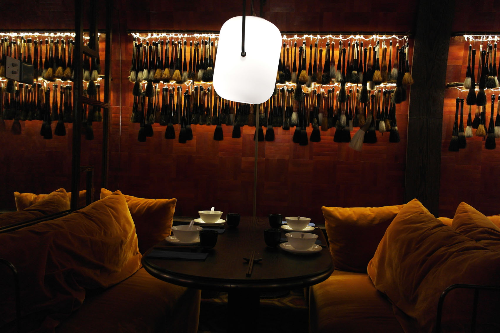 ร้านอยู่ใต้ดิน แต่ก็ดูไม่อึดอัดแบ่งห้องอาหารออกเป็นหลายโซน การตกแต่งก็ต่างกันในแนว Industrial Loft ที่ผสมความเป็นจีนได้อย่างแปลกตา และกลมกลืน